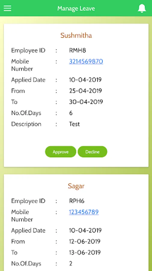In Task Section, task details, acceptance and rejections are indicated. Leave Request, Attendance Pin, are same as the above.