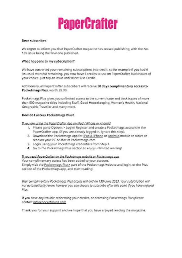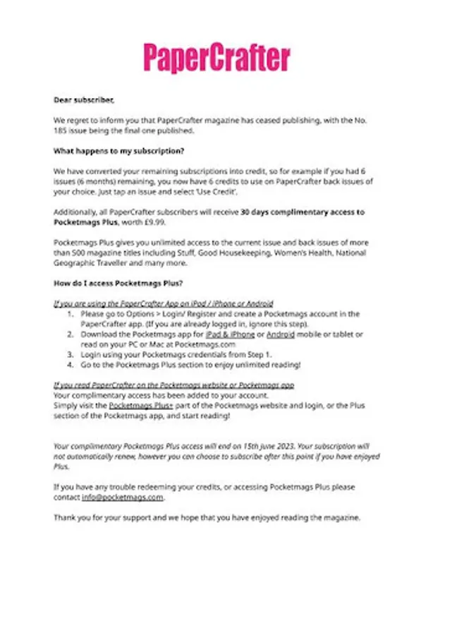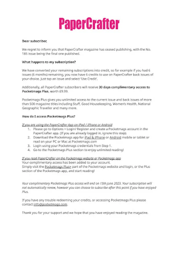 If you have any problems at all please do not hesitate to contact us: help@pocketmags.com