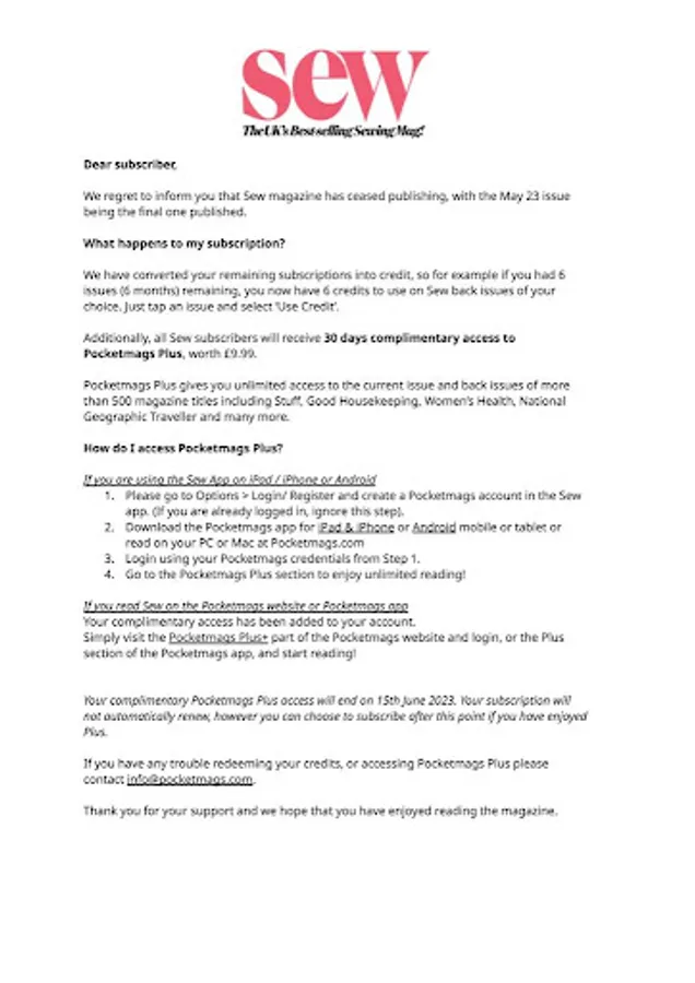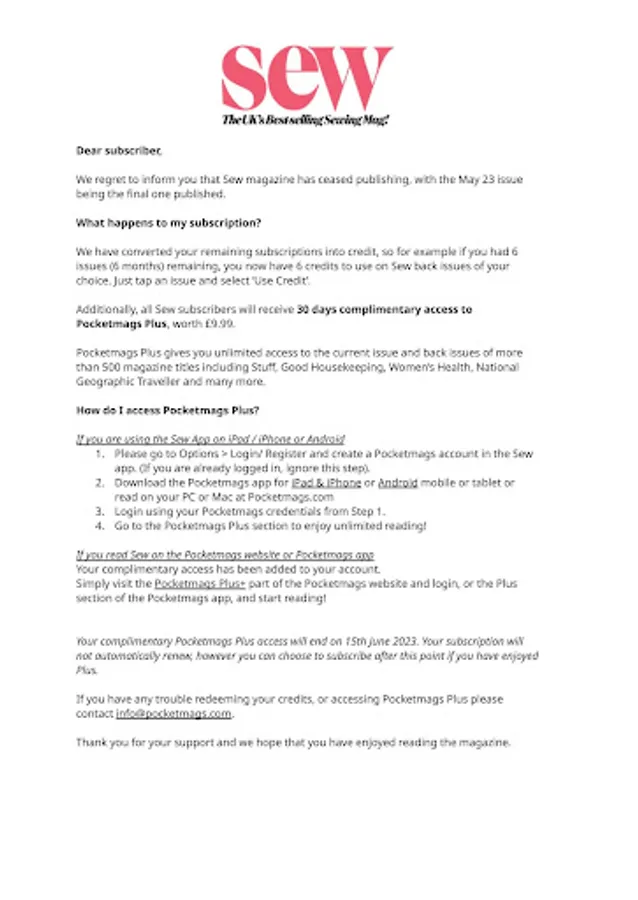 If you have any problems at all please do not hesitate to contact us at help@pocketmags.com