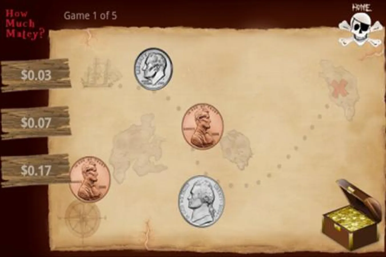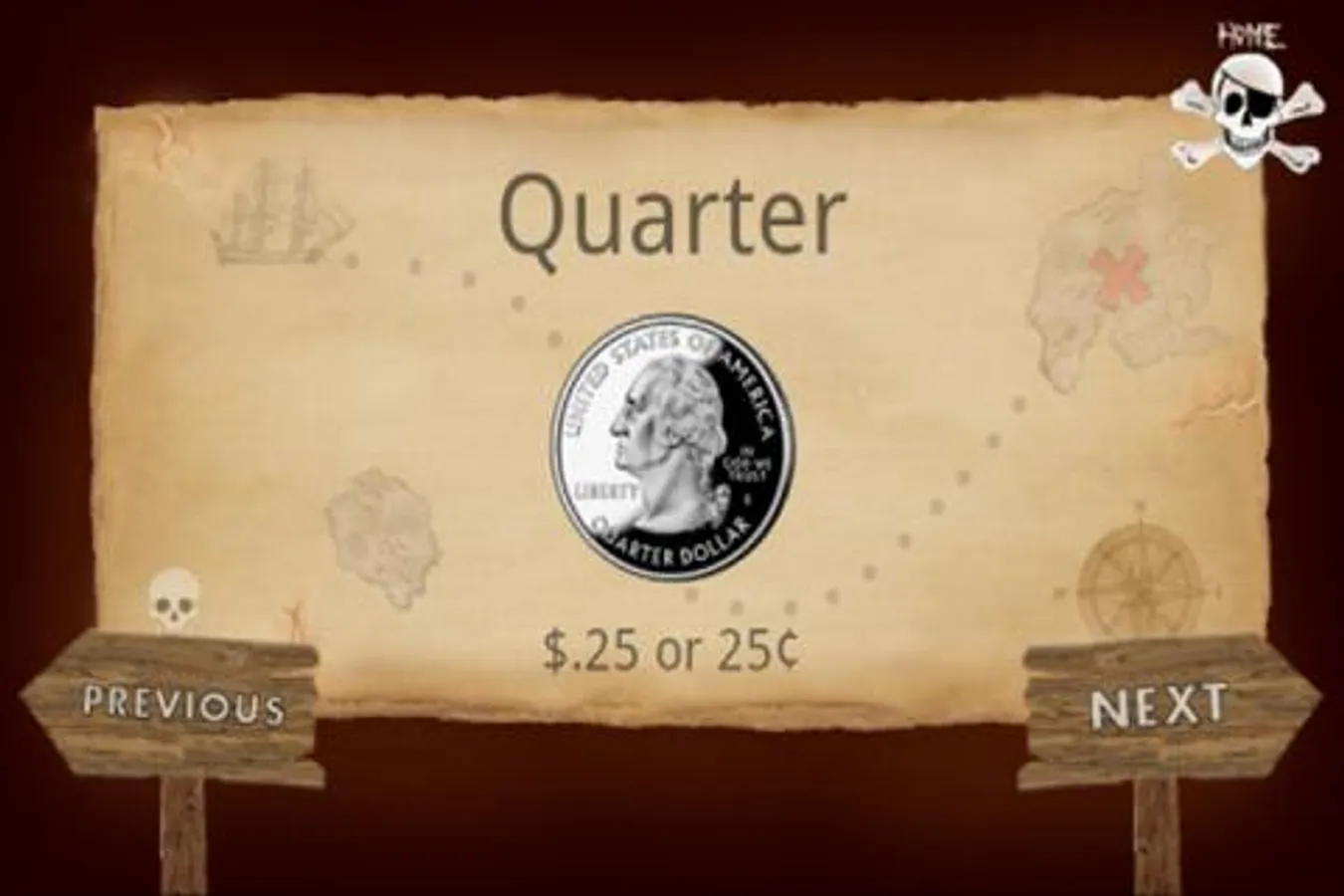 This pirate themed educational app teaches kids how to count money in a fun, interactive way. This action pack app comes with 2 pirate games: “How Much Money” and “ Put Money On Map.” “How Much Money” allows children to count up money on the treasure map and then check their answers. “Put Money on Map” is a game that teaches children to count money by dragging the correct amount onto the treasure map. If your child is just learning to count money, our app has an “Intro to Money” section that displays each coin and bill while pronouncing each word. Both games have 5 different levels of difficulty ranging from beginner to very hard. Results from each game are saved and displayed on a separate screen so parents can monitor how well their child is doing.