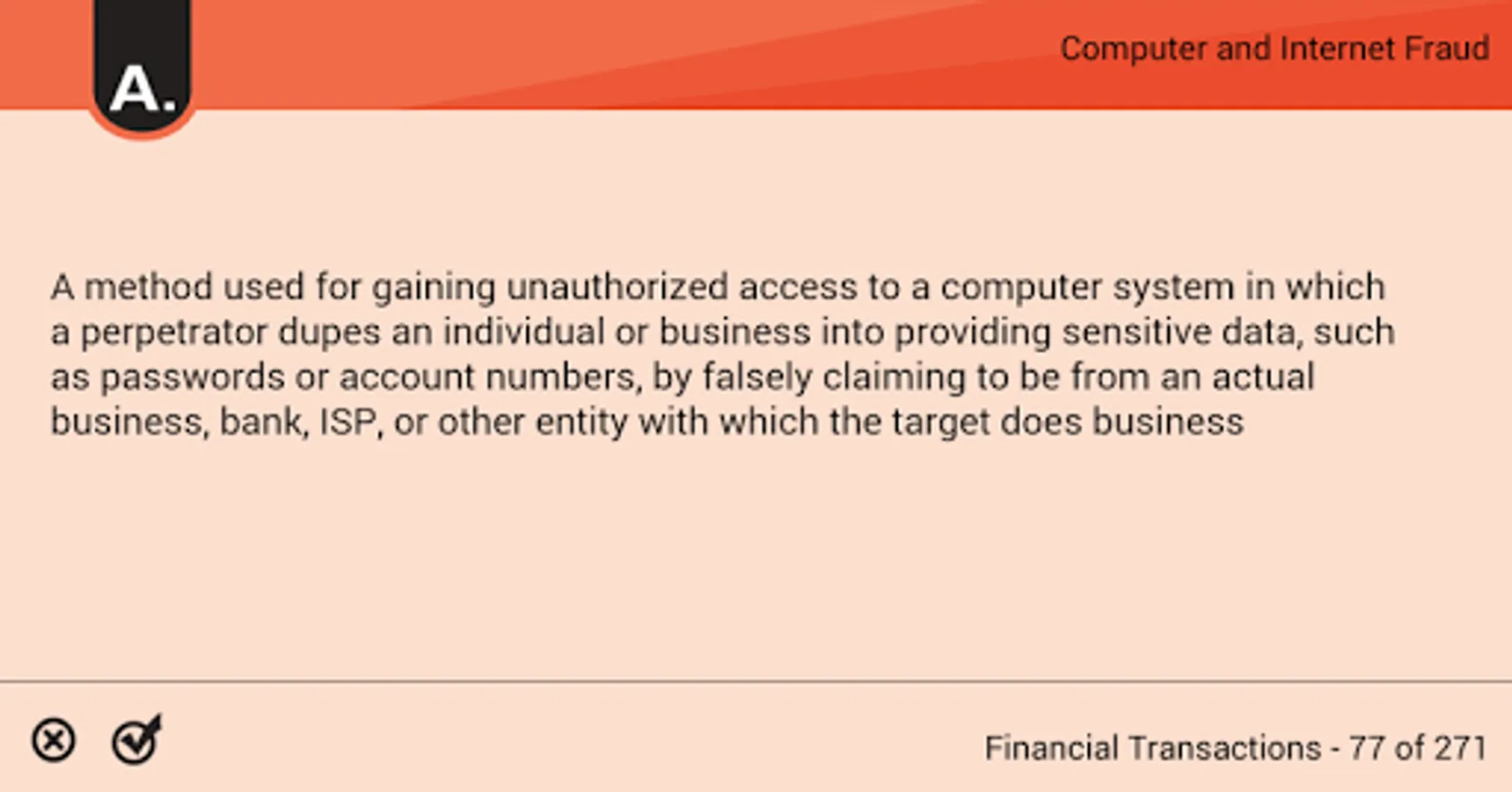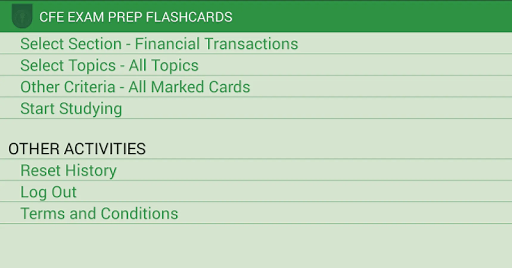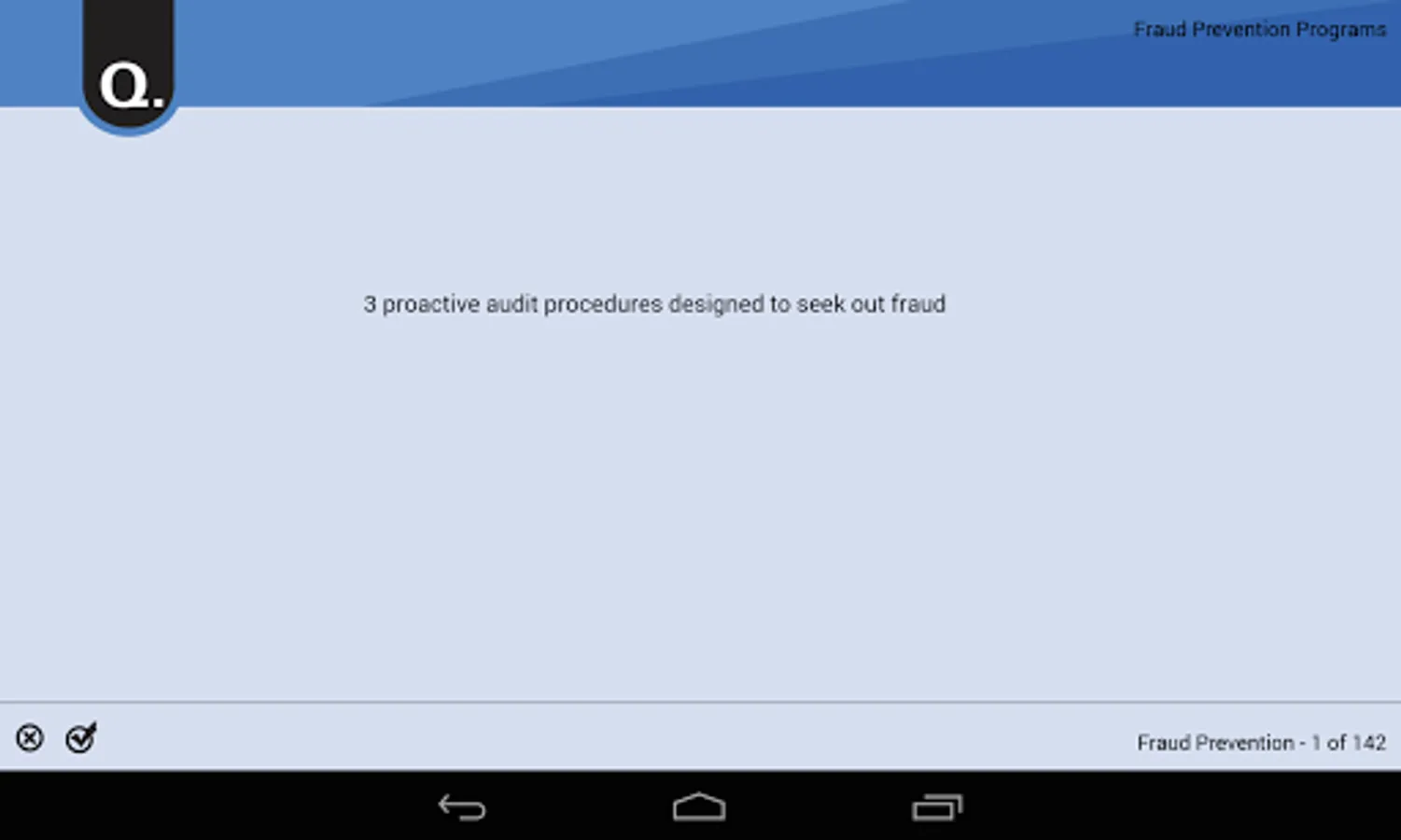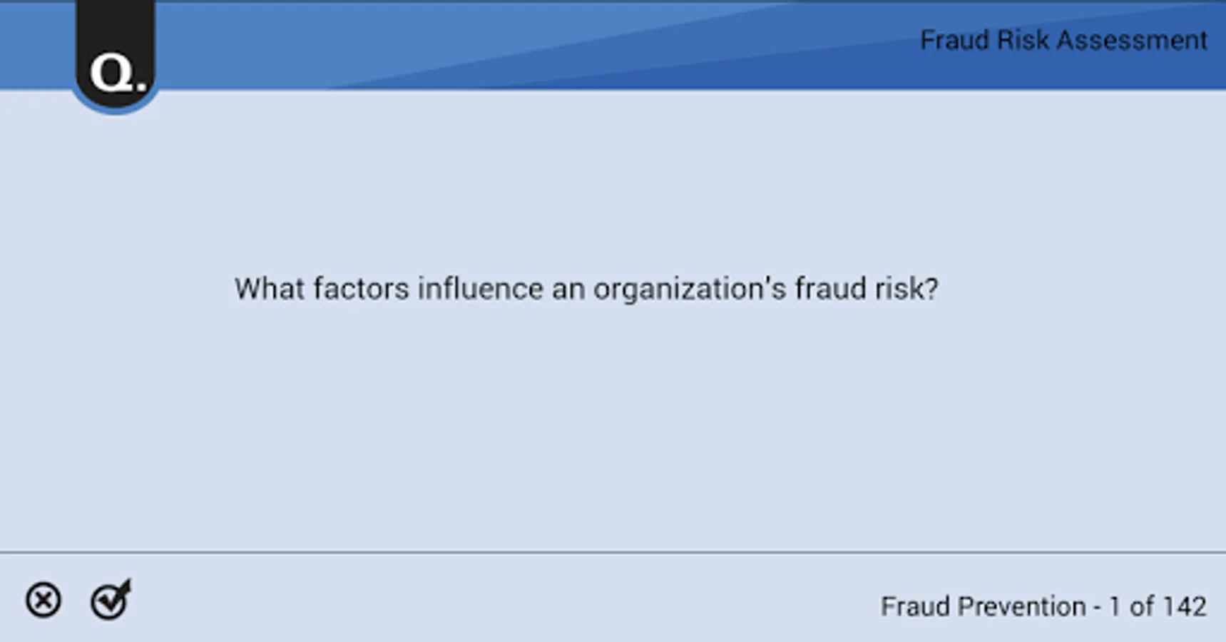 Familiarize yourself with the terminology and concepts covered on the CFE Exam with this app consisting of flashcards that complement the CFE Exam Prep Course. This free app is available exclusively to individuals who have purchased the CFE Exam Prep Toolkit.