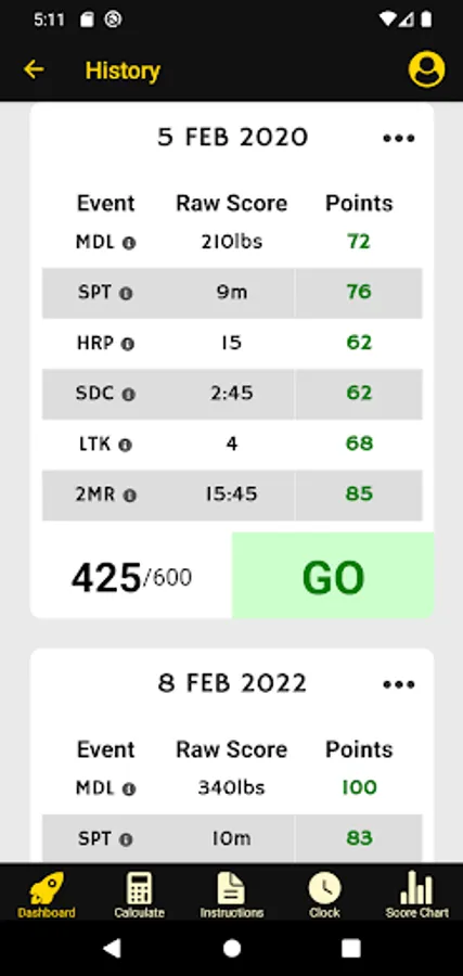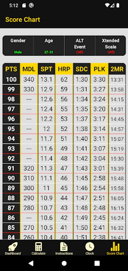 • The app uses your Physical Demand Category (Moderate, Significant, and Heavy) to determine if you passed at your respective category.