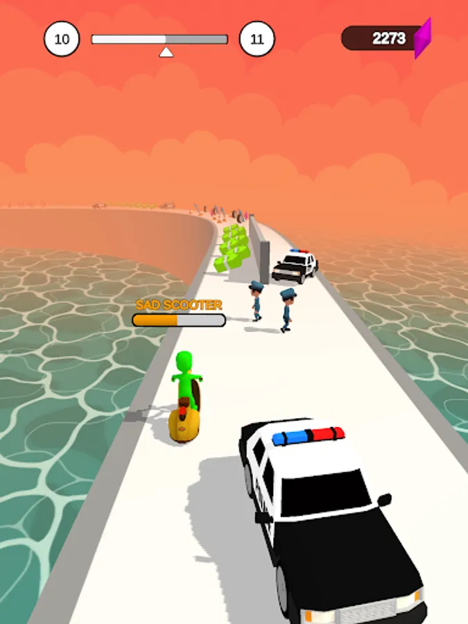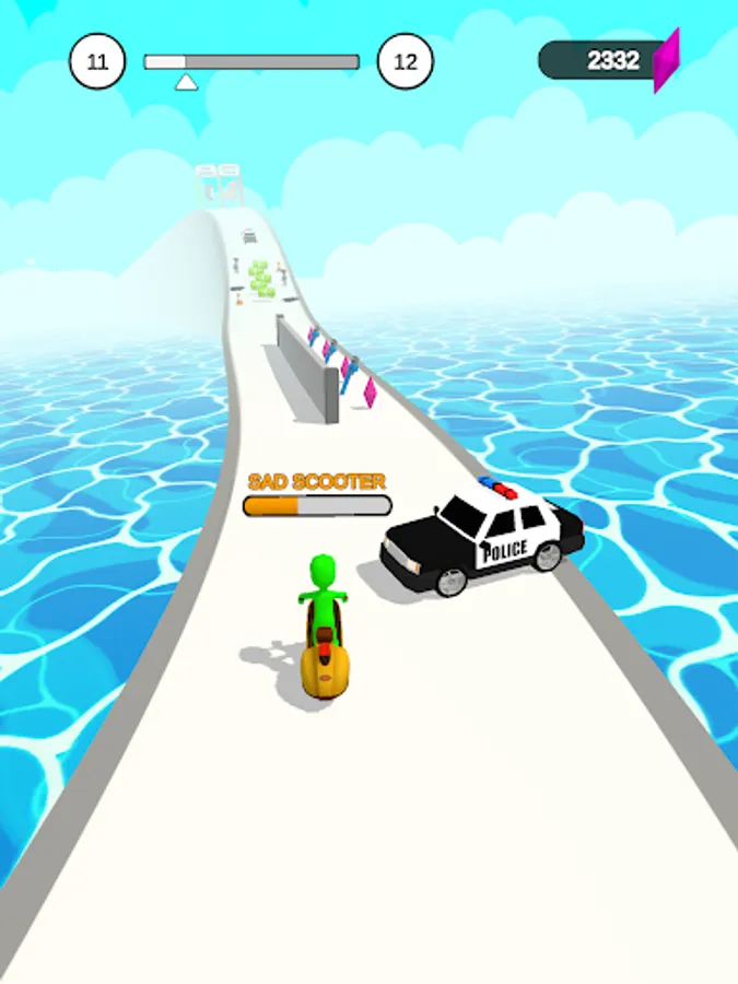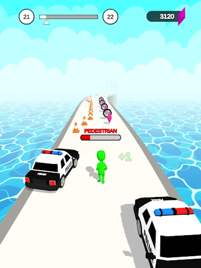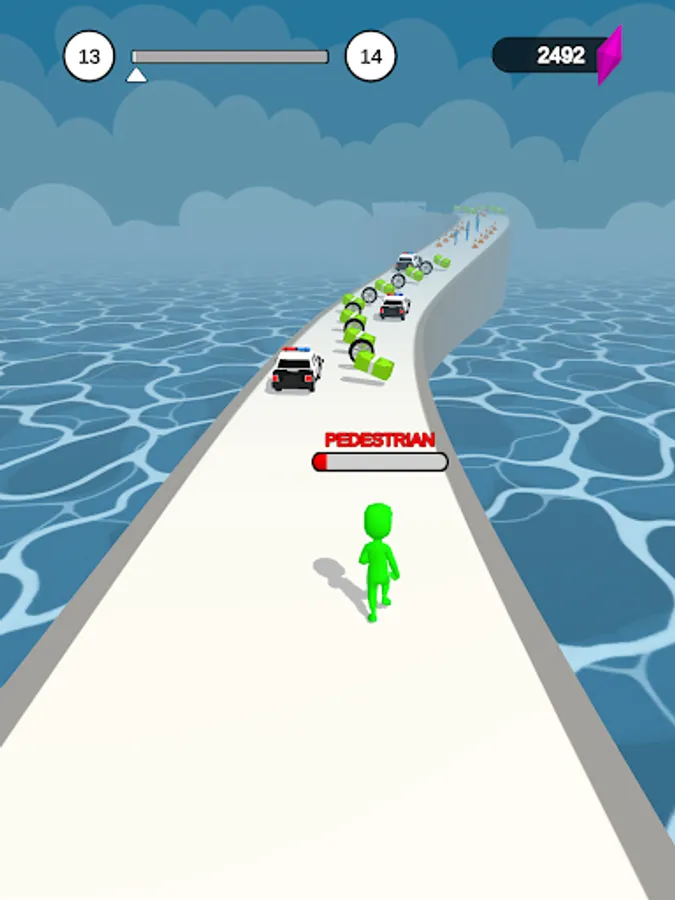 The more you collect, the better your car will be, from a sad scoter to the best car you can imagine, but be careful, if you commit infractions, you risk being a pedestrian again