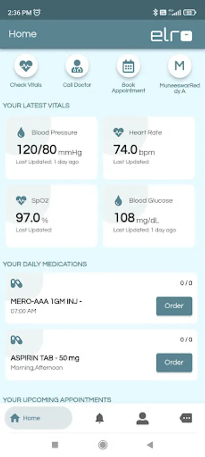 elro is uniquely designed to take care of you at home. It prompts you to check health vitals regularly, seamlessly connect with a doctor and deliver prescribed medicines to your home. elro will engage with you continuously, play your favorite videos, play cognitive games, helps connect with your friends and family, reminds about taking your pills on time and make you happy each day.