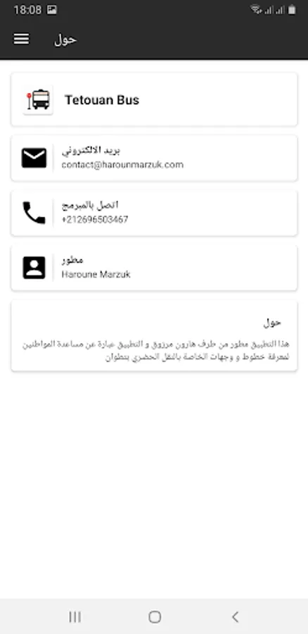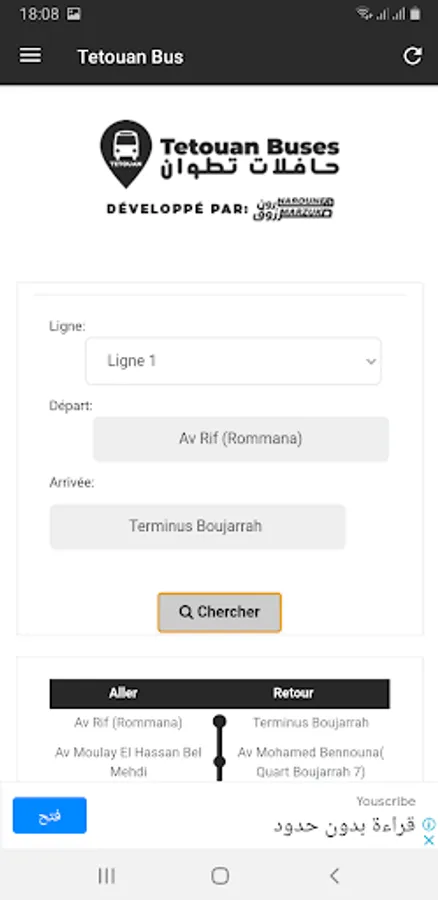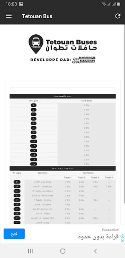 هذا التطبيق مطور من طرف هارون مرزوق و التطبيق عبارة عن مساعدة المواطنين لمعرفة خطوط و وجهات الخاصة بالنقل الحضري بتطوان