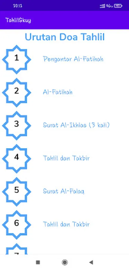 This application displays the order of the Tahlil Prayer and its translation