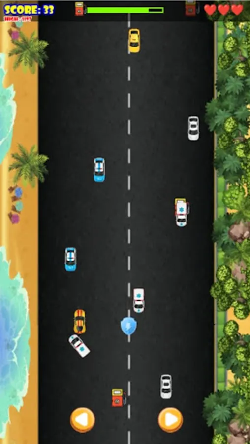 In this thrilling 2D mobile game, you'll take on the role of a daring roadster, racing through traffic at breakneck speeds. Your car runs automatically from bottom to top, and your mission is to avoid collisions with oncoming traffic while collecting fuel pickups to keep your speedster going.