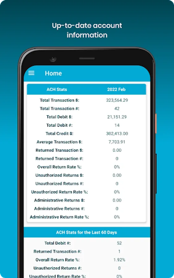 ACHBanking transforms your Android powered phone or tablet into a powerful, easy to use application, payment, and onboarding tool. This application allows you to safely and securely process your transactions and manage your services directly from your Android enabled device.