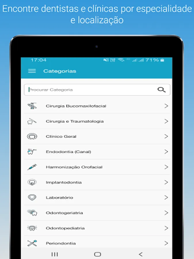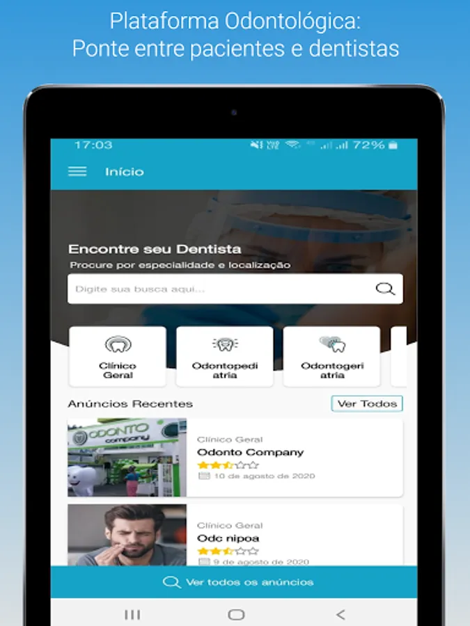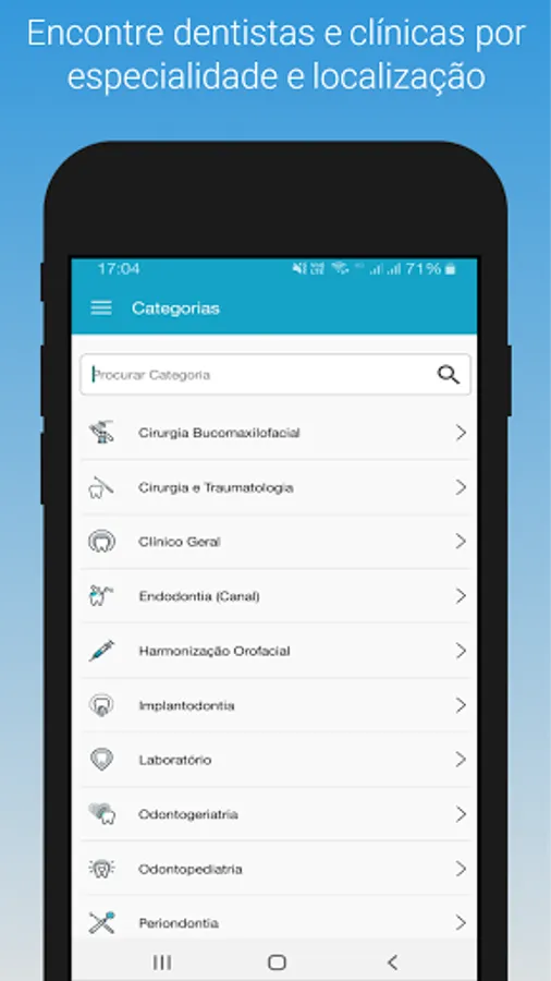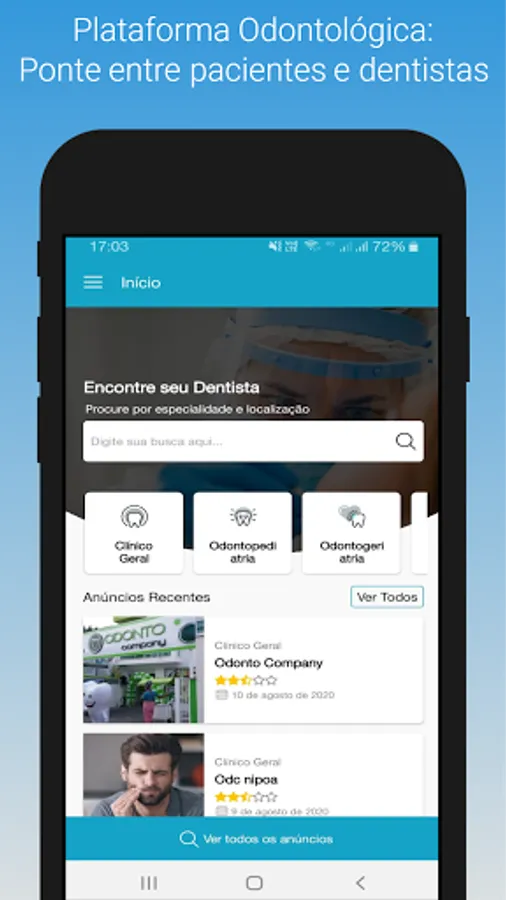 The application allows patients to save time and effort in the search for a professional, providing routine or emergency personalized care and allowing the scheduling of consultations according to location, need for services and dental plan.