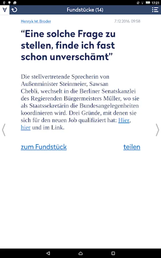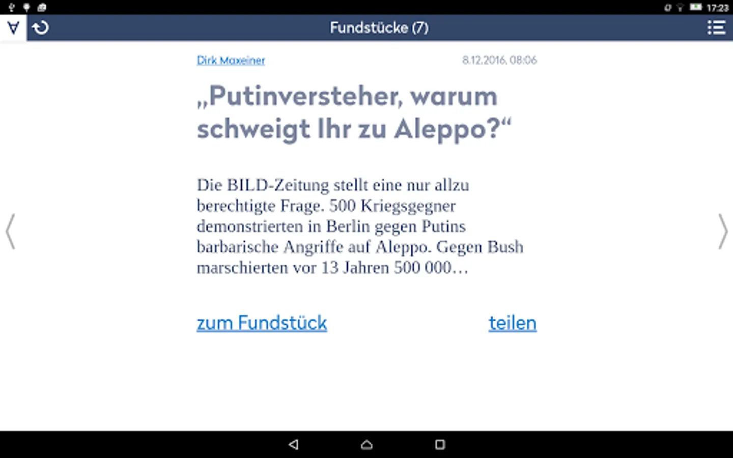 The app combines findings from the German media landscape - to read quickly and briefly commented by the authors of the "axis of good".