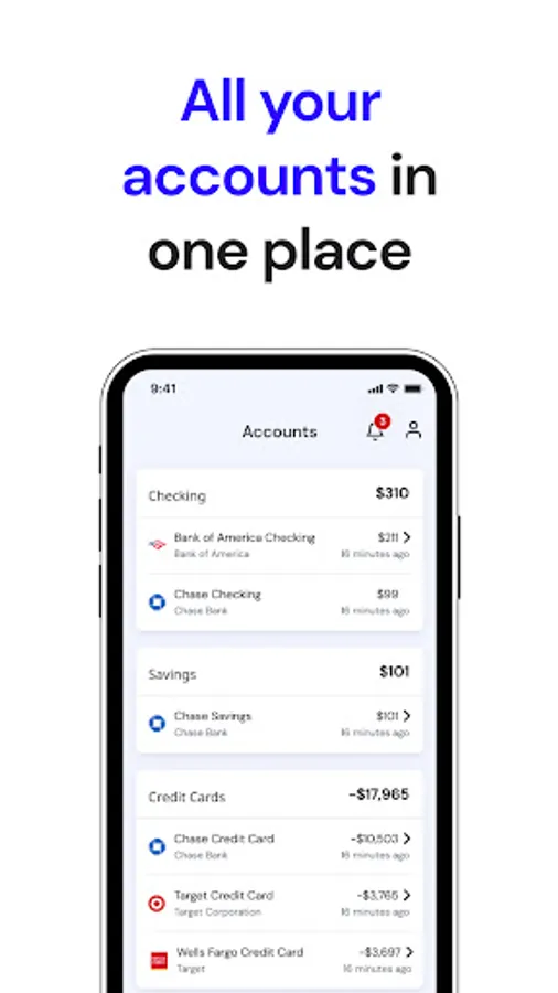 YOUR UP-TO-DATE FINANCES, ALL IN ONE VIEW.