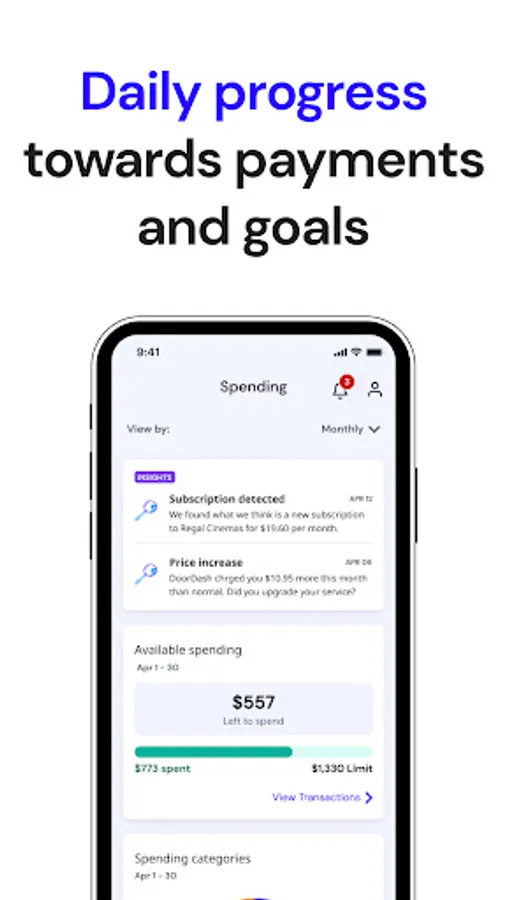 -Track daily progress towards weekly spend limits, goals, and upcoming bills