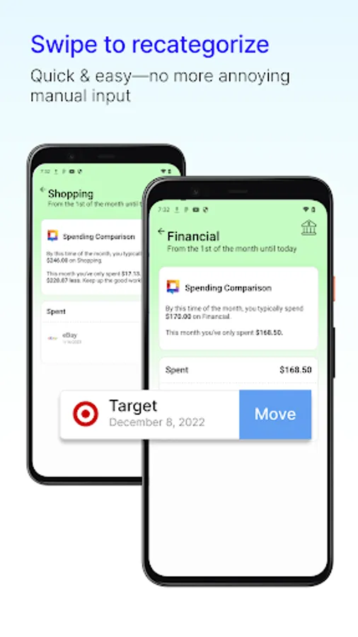 Track and organize your spending with categories automatically. Or redo financial categories easily in a second with just a swipe to keep your expense tracking accurate.