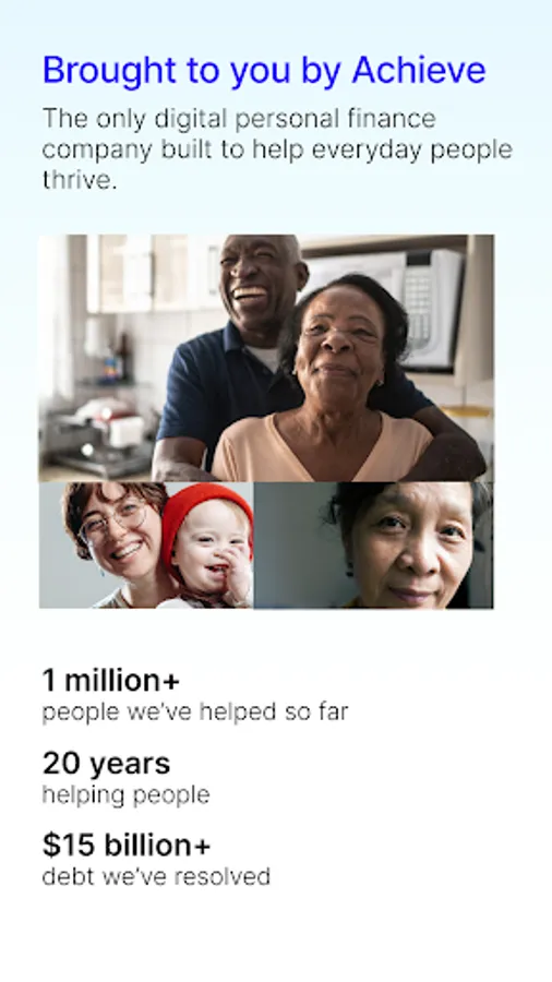 The money manager app MoLO is brought to you by Achieve, the only digital personal finance company built to help everyday people thrive. With its debt resolution, personal loan, and home loan solutions, Achieve has helped people resolve over $15 billion in debt and is rated A+ by the BBB.