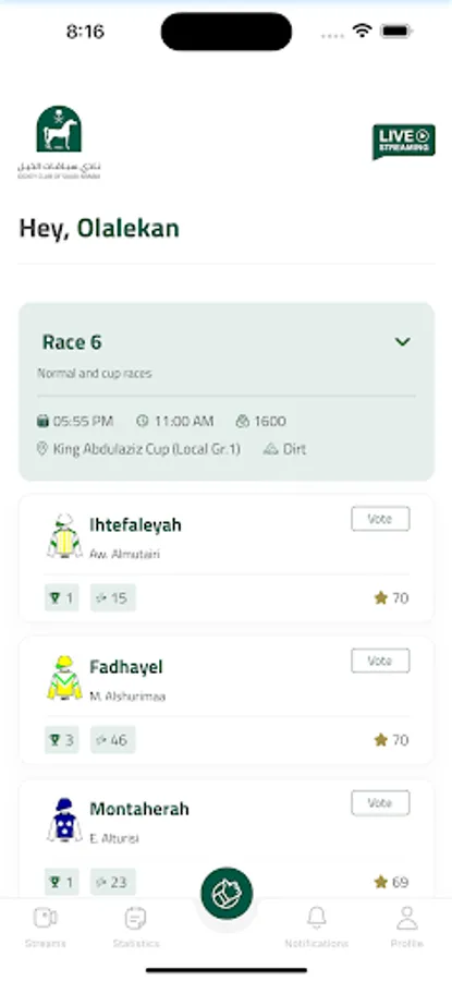 The Saudi cup nomination app is an app built for nominating horses for race wins happening during competition.