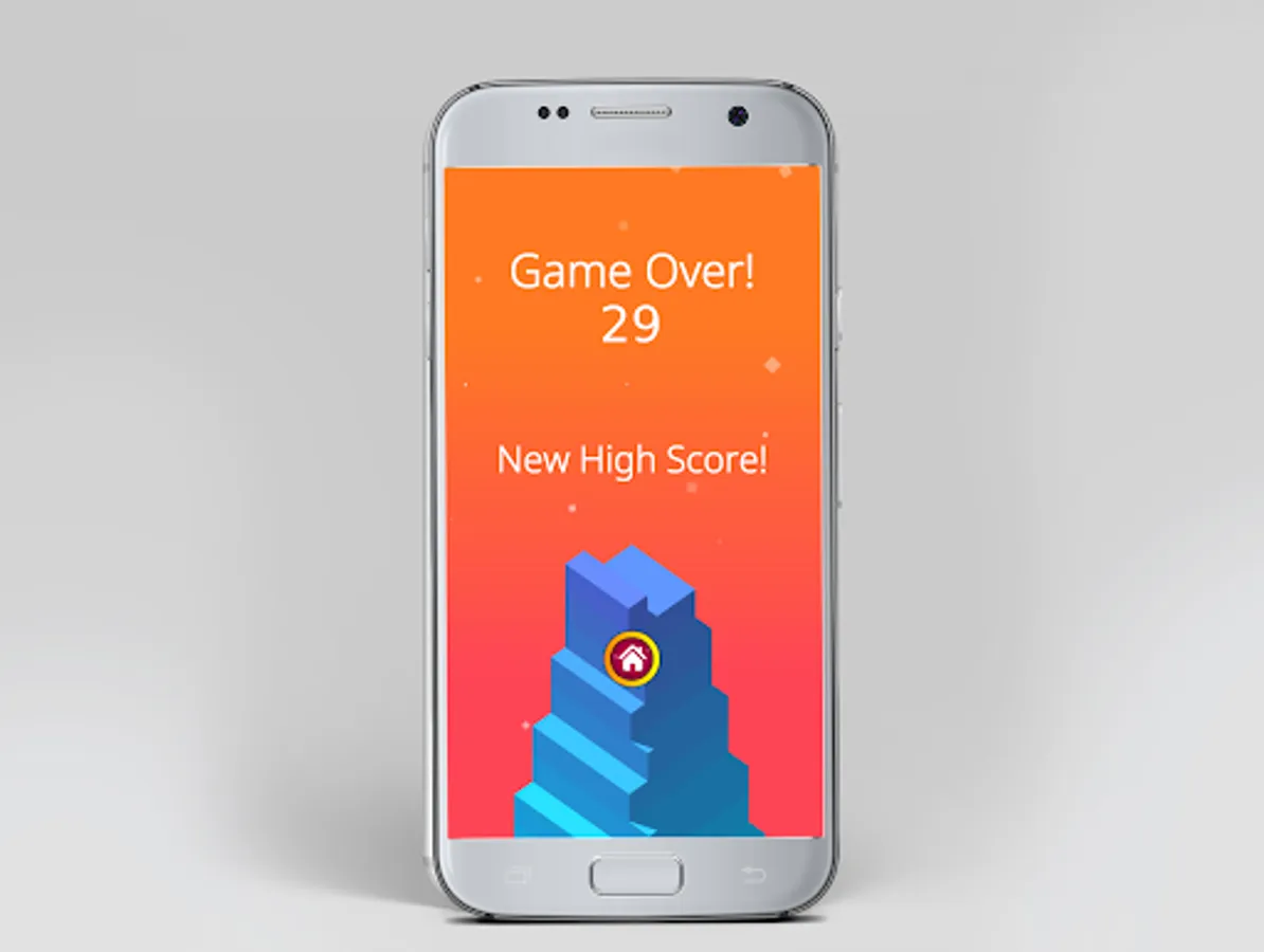 In which, you control a diagonal-moving block. Your mission is to stop it exactly on top of the previous block. This is done by tapping in absolutely any spot of the screen. There’s almost no delay between your tap and the block stopping, so you have to time it right.If you do it, then you’re awesome and will get another block exactly the same size. If you fail to do it, the part that is left outside of the underlying block will be chopped off and disappear, and the next block you get will be smaller. If you keep failing to stop the block exactly on top of the previous one, your brick will get smaller and smaller, making the game progressively harder.