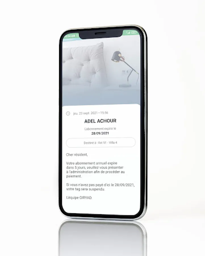 This application aims to serve as a bridge between the administration of the residence, and the residents. It will allow them to receive all important notifications in real time.