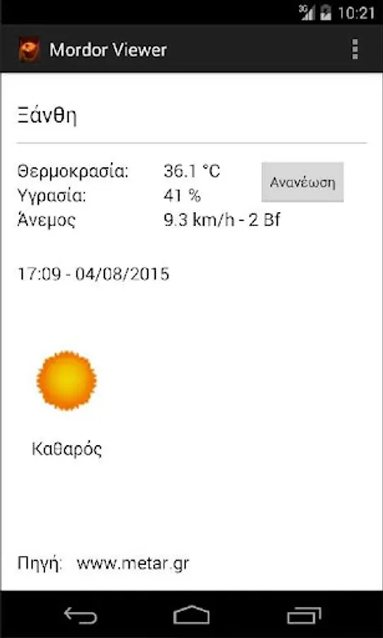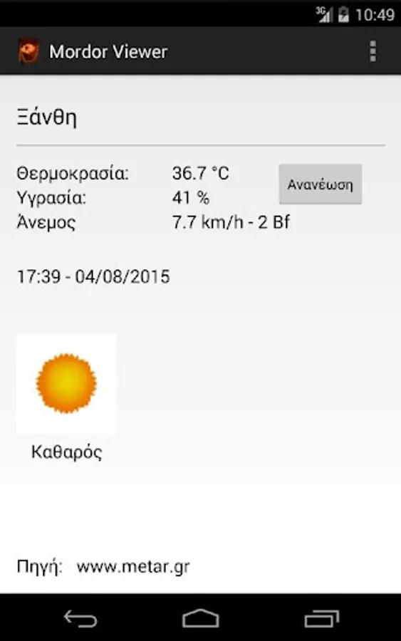 Displays temperature, humidity etc. from the city of Xanthi, not only with source metar.gr.