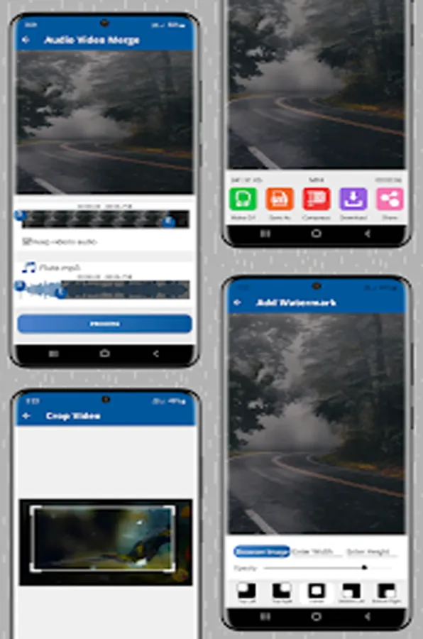 This app comes with a set of tools to edit video. You can trim, merge, or crop any video file. Also you can extract the audio from any video file and save it as MP3 or even you can change and replace the audio in any video file or mix it with any audio like a background music.