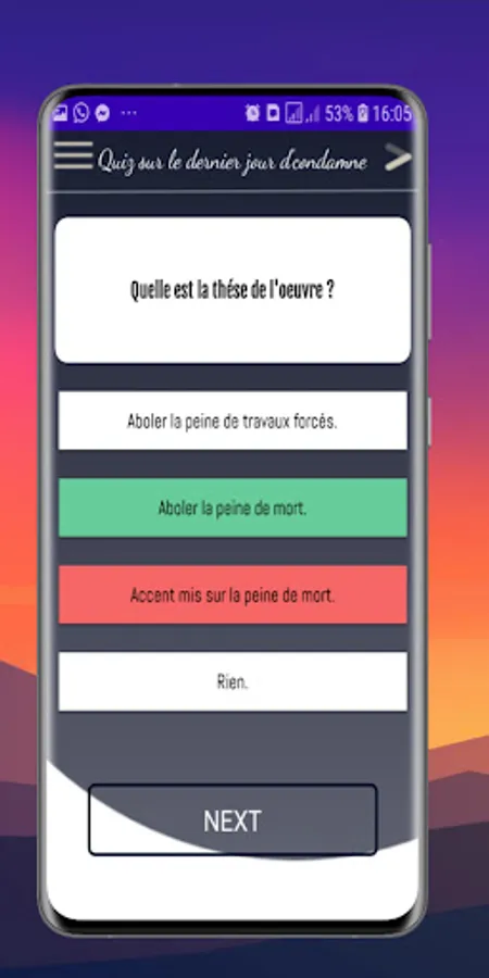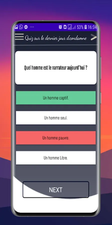 Cette application détermine le niveau de compréhension des élèves de ce roman, cette application est une question et une réponse, Il contient toutes les questions fréquemment posées précédentes dans les examens régionauxaux, enfin vous obtenez