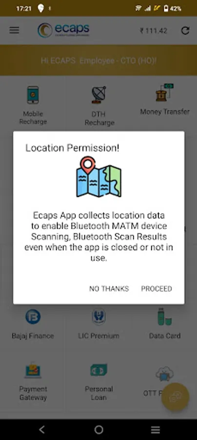 Ecaps App collects location data to enable Bluetooth MATM Device Scanning even when the app is closed or not in use.