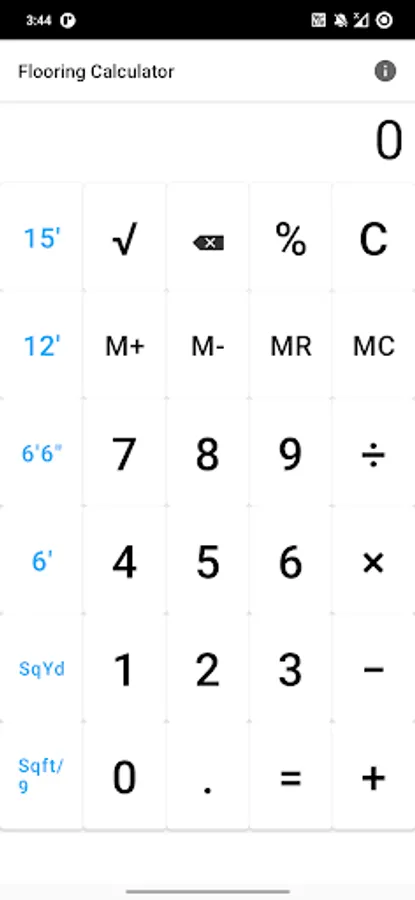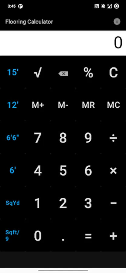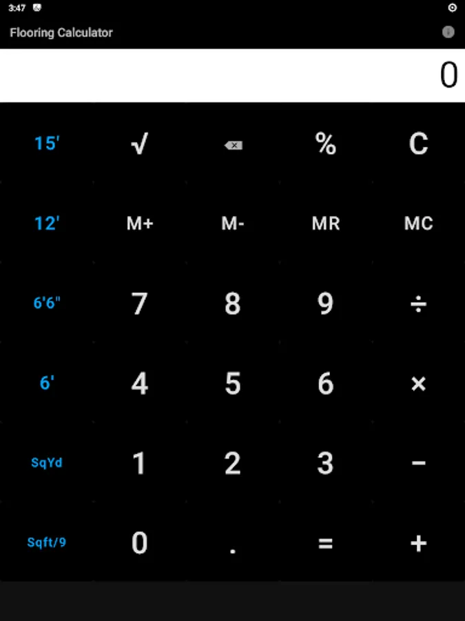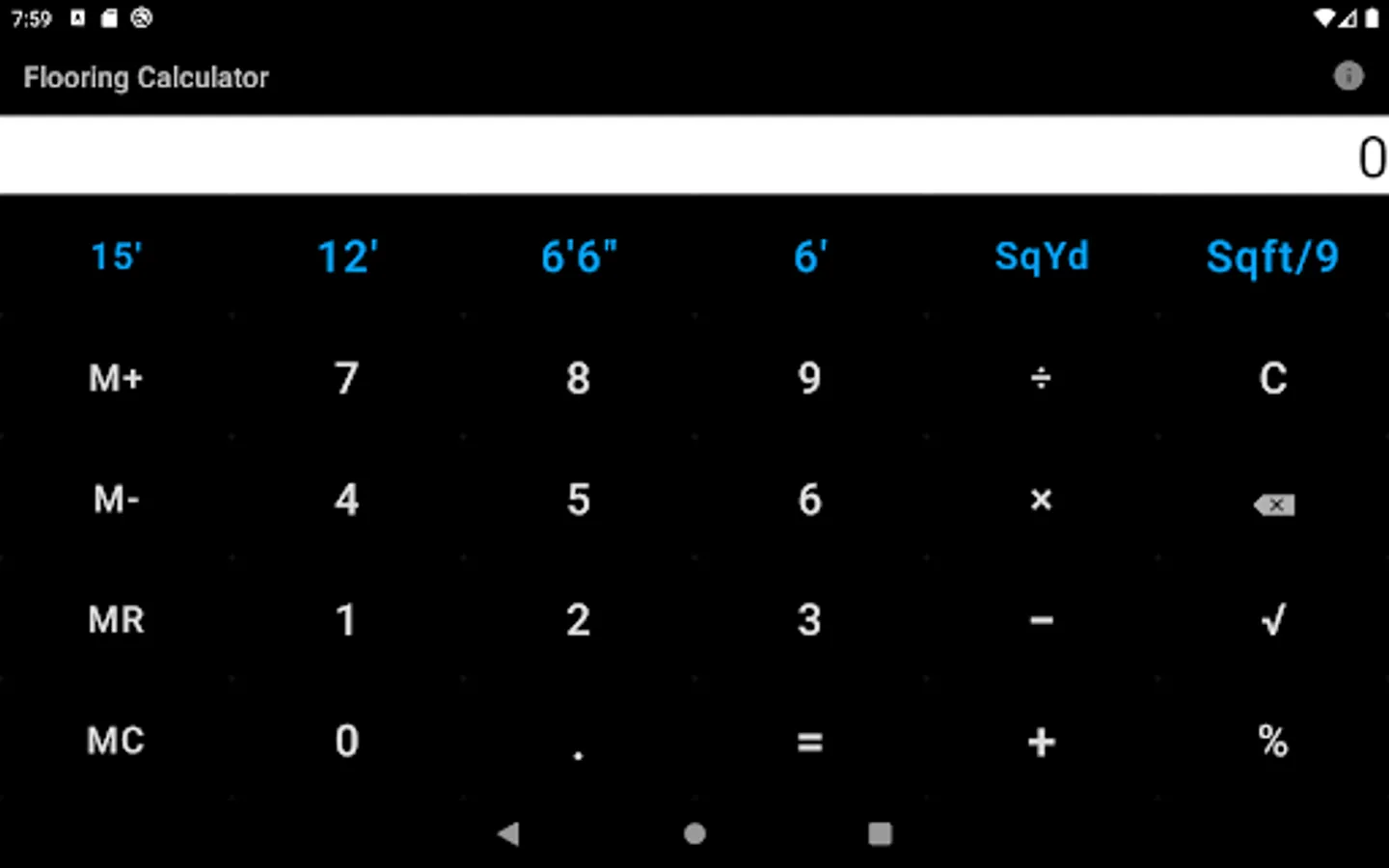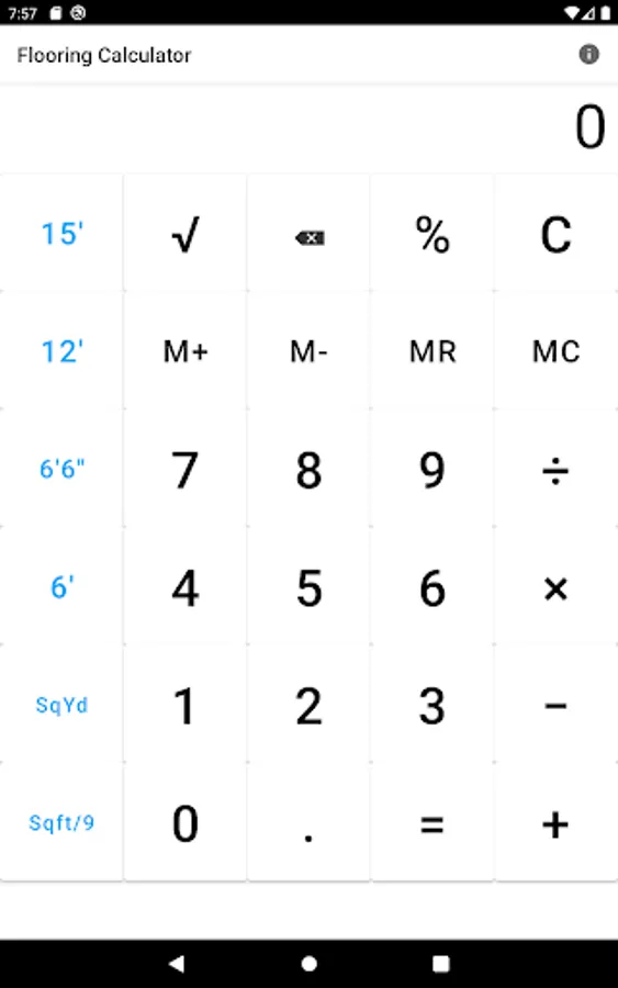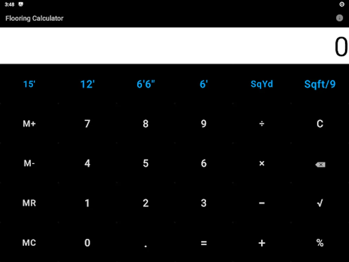 This calculator has all of the normal calculator buttons along with six(6) flooring specific buttons.