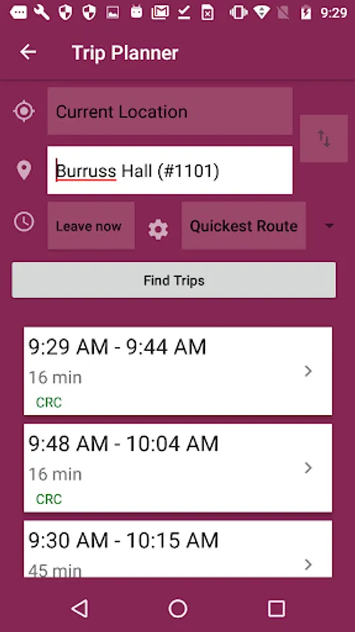 · View route and schedule information for up to six trips on each route