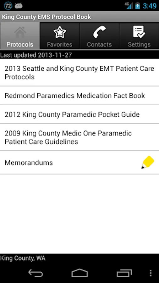 King County EMS Protocol Book is a free app that provides quick offline access to the King County EMS protocols and supporting materials.