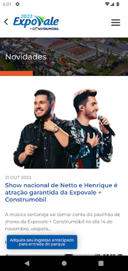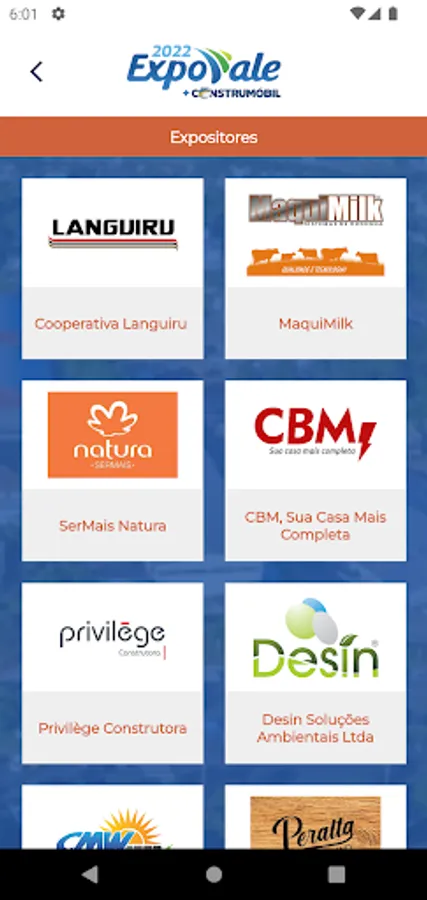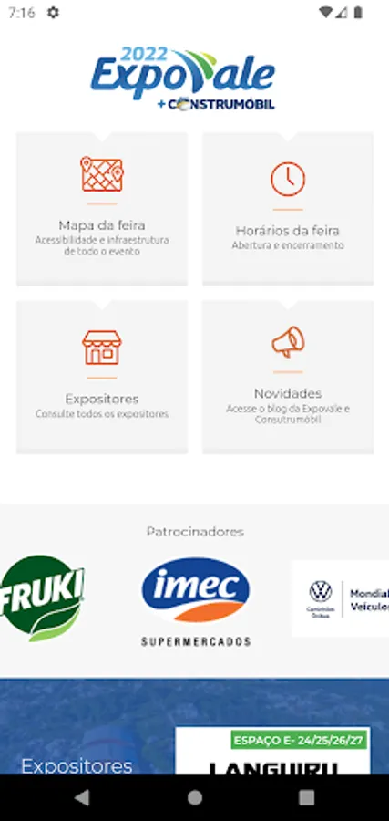 With the new Expovale + Construmóbil application, you can find the complete schedule of the fair, access to exhibitors, event map and much more.