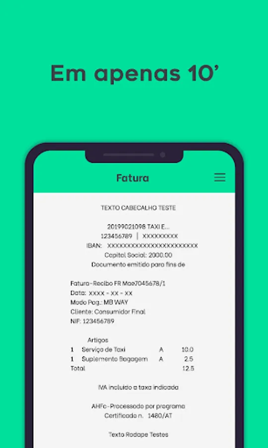 Fast and simple to use application, issues invoices in 10 seconds, integrates with MB WAY and even card payments. Now it's easy to do what you love most - make money on wheels.