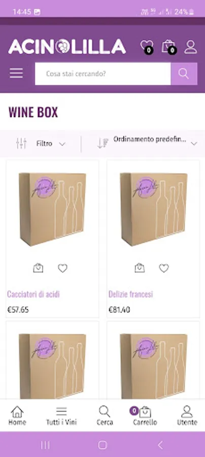 Il vino ormai non ha più confini, e noi di AcinoLilla lo sappiamo bene. Infatti, scoviamo le eccellenze ovunque esse si trovino, per portarle ai vostri palati: dalla Svezia all’Australia, dall’occidente all’estremo oriente, passando dal vitigno più famoso a quello sconosciuto. Potrai scegliere tra più di 1700 vini differenti, provenienti da oltre 30 nazioni diverse. E se non hai voglia di scegliere, puoi prendere un Wine Box: 3 vini selezionati pronti da essere bevuti! Se invece ami il mistero, riceverai comodamente a casa ogni mese il Box Lilla, 3 vini misteriosi accuratamente selezionati a tema.