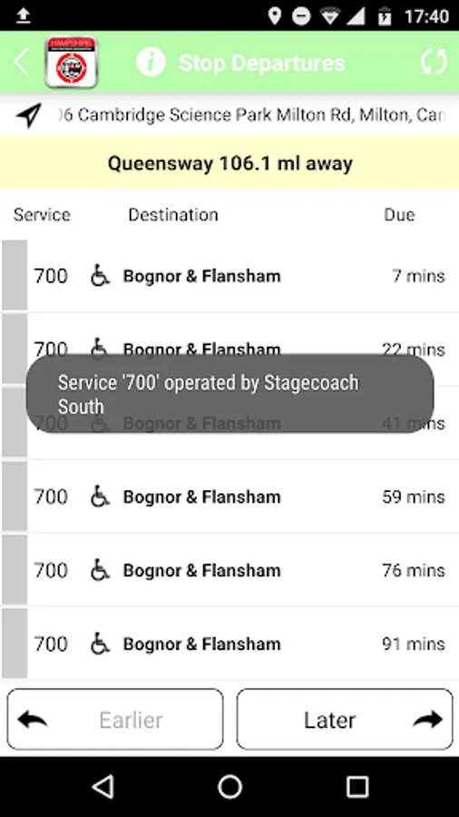 · Detailed journey information: Provides full information about a journey, including where the service stops, the distance of stops from your current location, bus due time, predicted departure time and scheduled departure time.