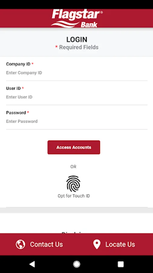 To get started, download and launch the app. Sign in using your Treasury Access Company ID, User ID, and password. You must be currently enrolled in Flagstar Treasury Access to use the mobile app.