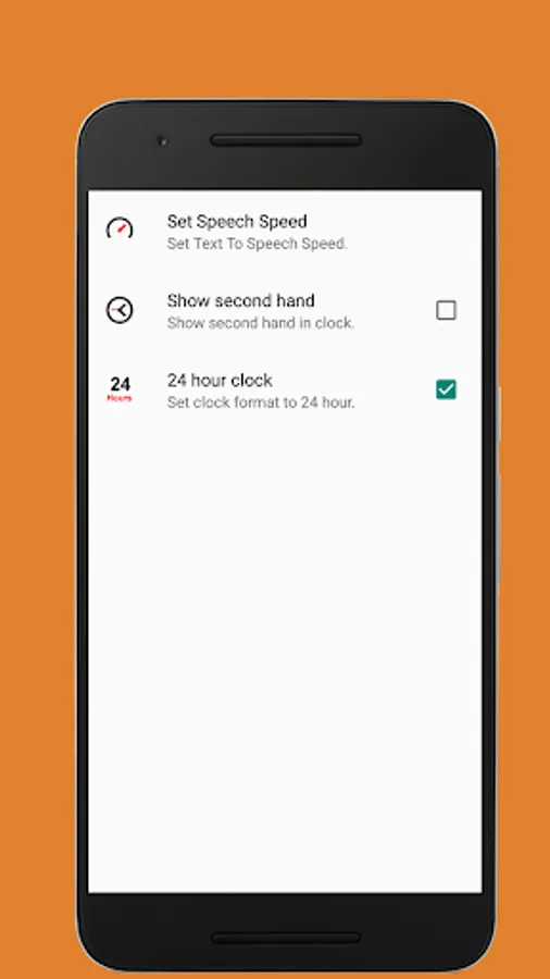 The app has a setting option that allows kids to choose their preferences. They can turn off or on the second hand if they want to focus on the hour and minute hands only. They can also choose to show the time in 24 hour format or 12 hour format.