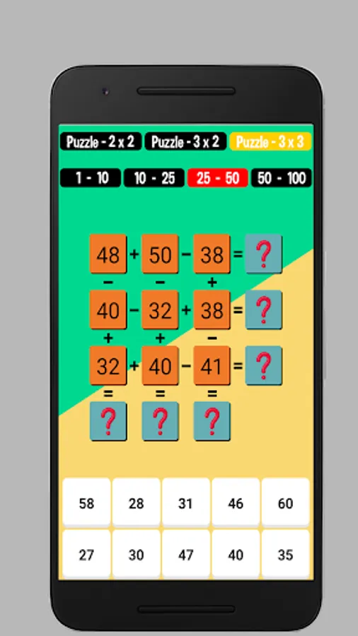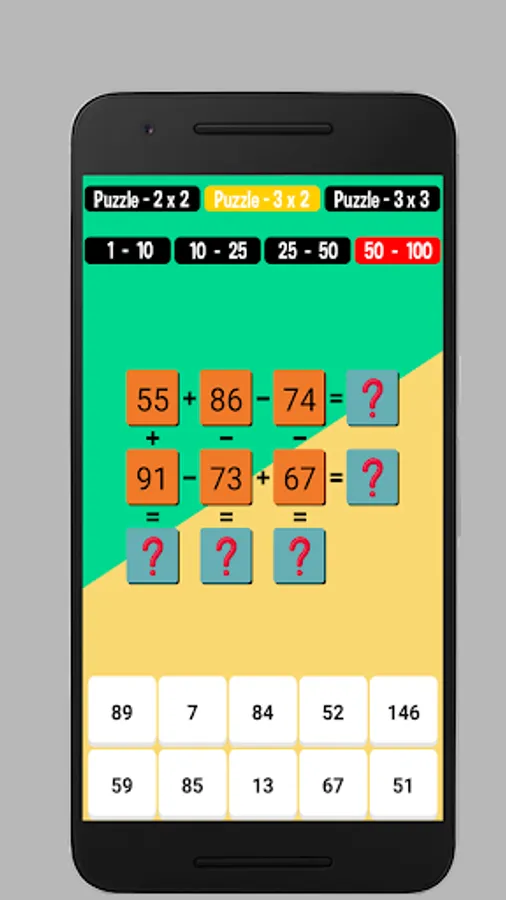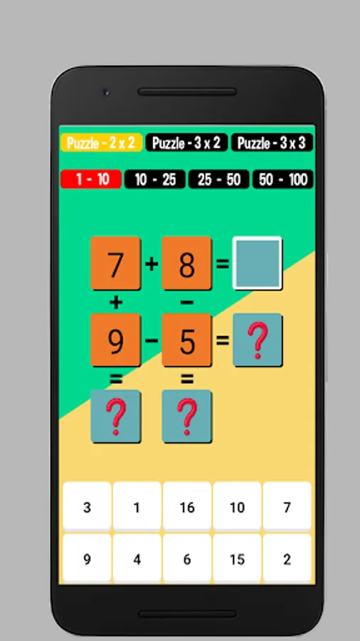 Math Puzzle offers a wide range of categories to choose from, allowing you to work with numbers from 1 to 10 for beginners, and gradually advance to more complex challenges with numbers ranging from 50 to 100. This progression ensures that you never feel overwhelmed and can learn at your own pace.