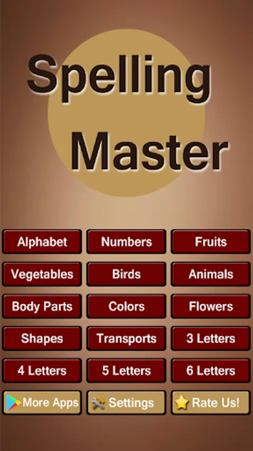 The Spelling Master Game caters to various word categories, making the learning process even more exciting. These categories include alphabets, animals, fruits, vegetables, body parts, numbers, flowers, birds, transportation, shapes, and colors. Each category is enriched with high-quality images to provide a visually immersive experience.