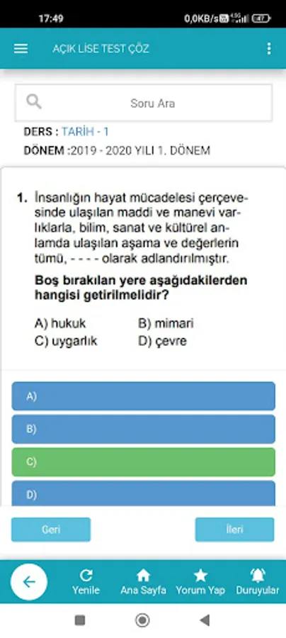 With the Open High School Test Solve application, you can solve the AOL and MAOL tests, our open education high school and vocational open education high school students can easily prepare for the exams.