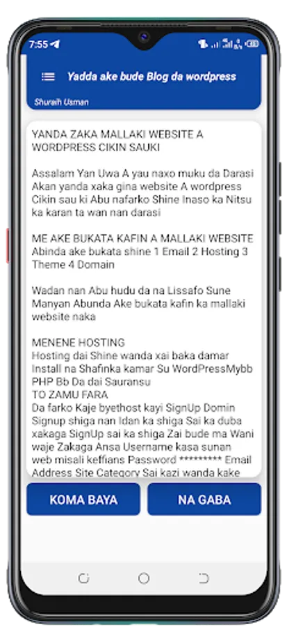 Anyi cikakkun bayanai na abubuwa da dama cikin application din da suka danganci