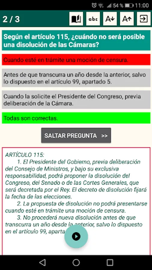 This application is designed to help you pass any exam or selective test that includes the Spanish Constitution on its agenda.
