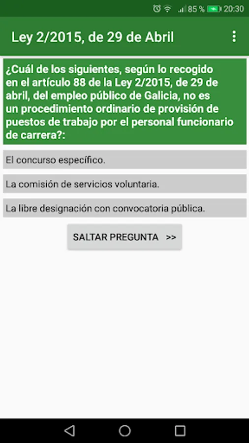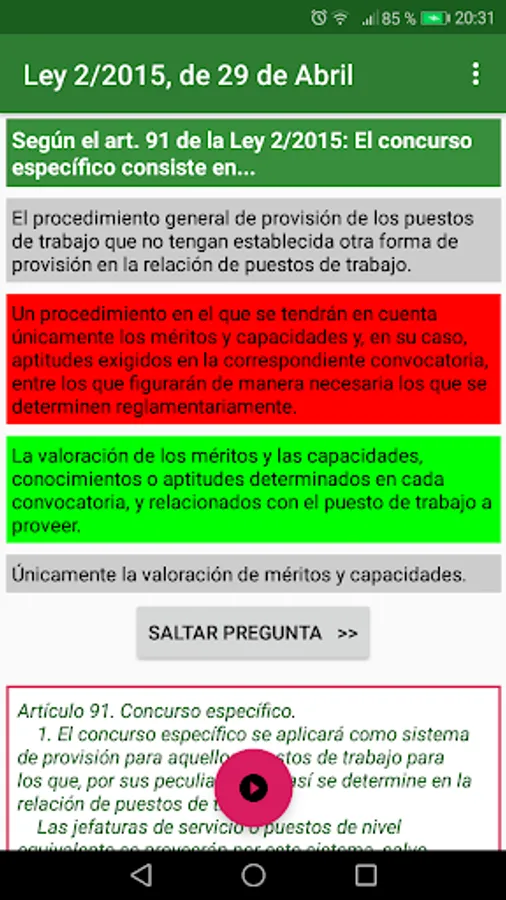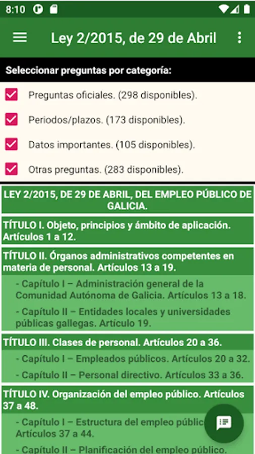 This application is designed to help you pass any exam or selective test that includes Law 2/2015, of April 29, on public employment in Galicia.