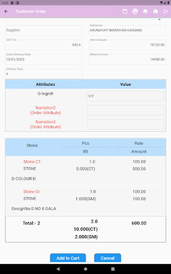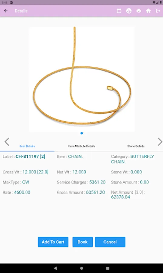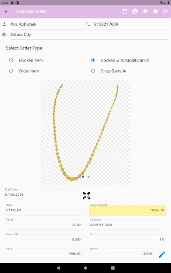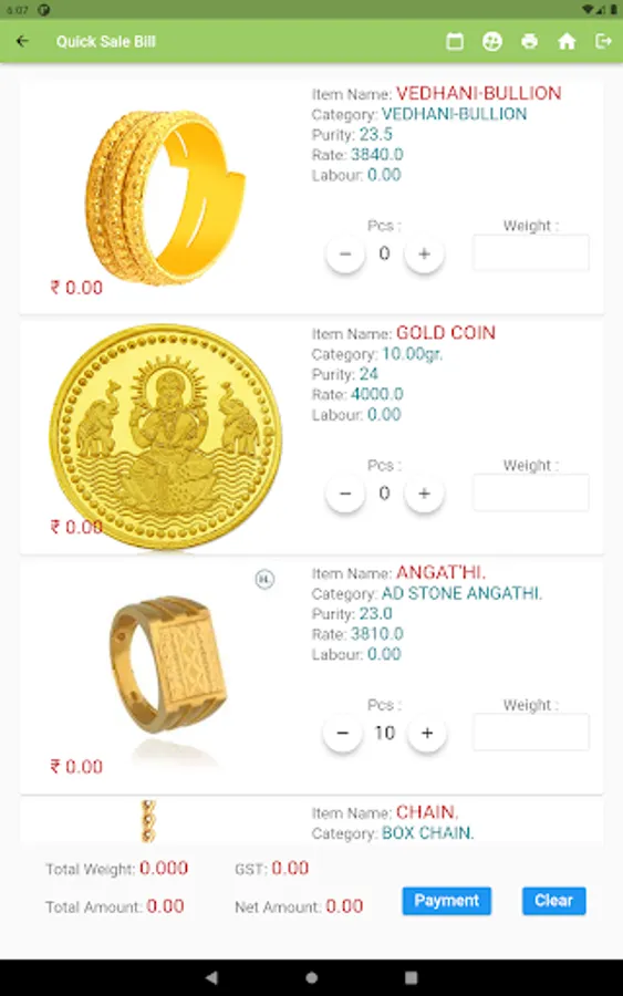 This app enables users to carry out important daily point of activities like giving ornament valuation to customer,preparing delivery note,old metal notes and much more. Users can also view ornament image catalogue.