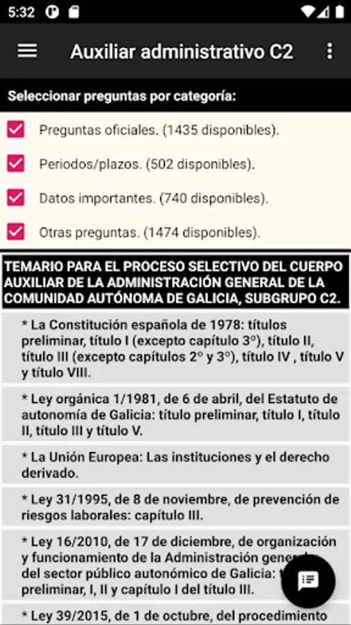 This application is designed to help specifically overcome the call for administrative assistant (C2) of the Xunta de Galicia, adapting the contents to the corresponding agenda. However, said content can be selected in parts, thus being able to also be useful for other calls that include topics discussed here. These topics are: