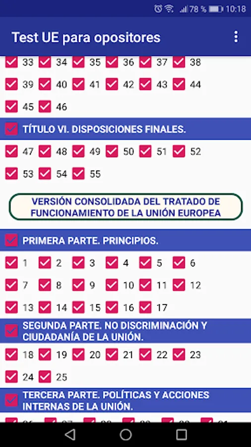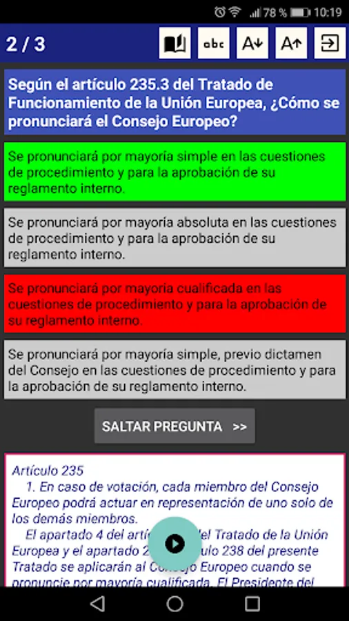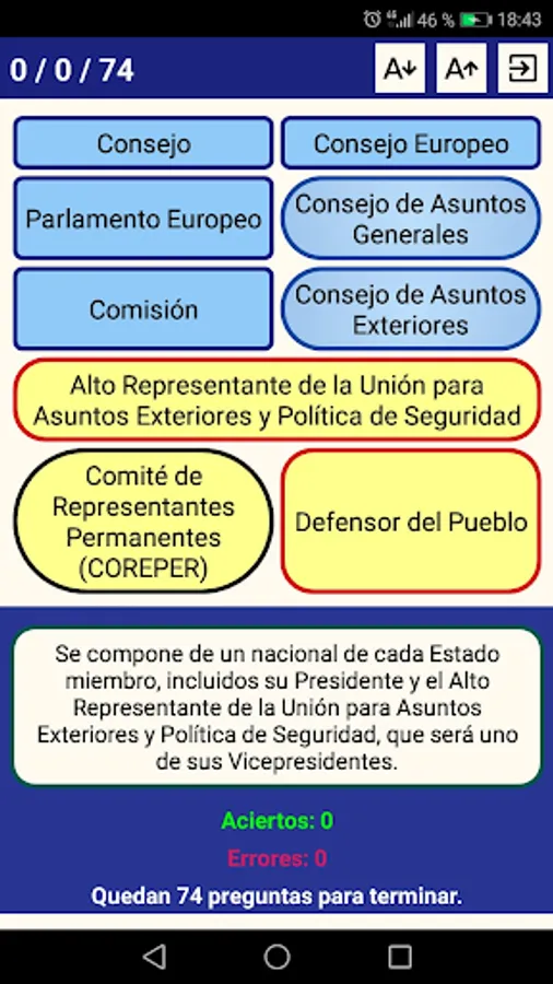 This application is designed to help you pass any exam or selective test that includes the European Union on its agenda. The large number of questions included here, and especially their format, will be very useful to be able to face it successfully.