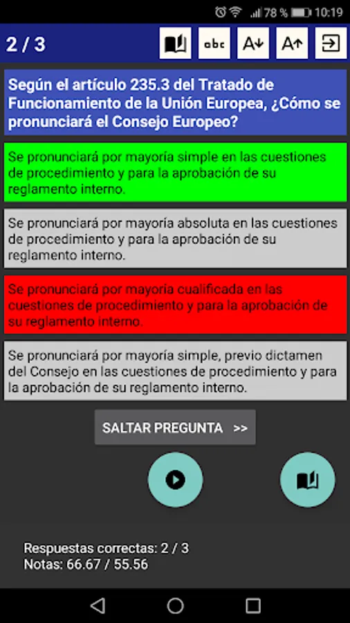 The design of this app and a large part of its contents have been created to serve as an important study tool. It is not only about evaluating knowledge but, and this is what differentiates it from the classic tests, about strengthening them and progressing in the study.