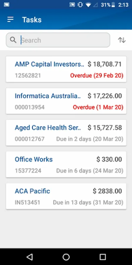 2. The Tasks summary screen allows user to search for specific tasks or sort tasks to quickly action tasks that are overdue or close to their due date. Task details screen presents all necessary details in an easy to navigate layout, with access to the task-specific receipt/document, all comments made by any previous approvers on the case or view any supporting documents/evidence attached to the case.
