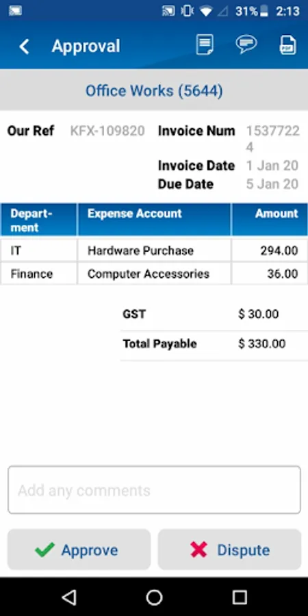 1. No more overdue invoices/missed deadlines, the app will alert you when there are tasks pending approval. You can simply tap the notification to launch the app and swipe to action it. It's that easy - gone are those days where you had to log in to a work queue from your laptop to interact with your workflow tasks. With ROO, it doesn't matter whether you are working from home, having a holiday in Hawaii or at the airport - you are always connected.