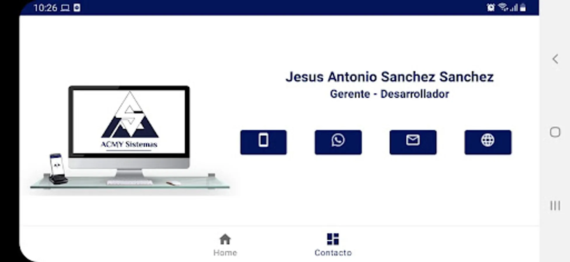 ACMY Sistemas Manager digital contact card, with different communication channels.