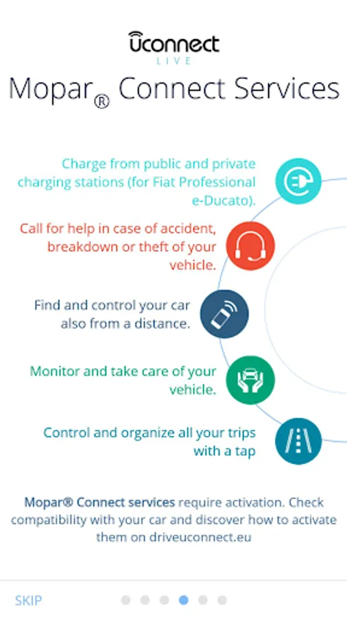 Check whether the services are available for your vehicle in the "Help&Support" section on Driveuconnect.eu, where you can also find the quick guides for activation.