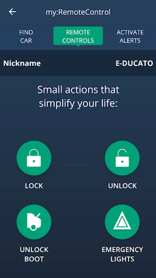You can lock and unlock car doors, unlock boot, locate the car on the map and receive a message alert if your car leaves a preset area