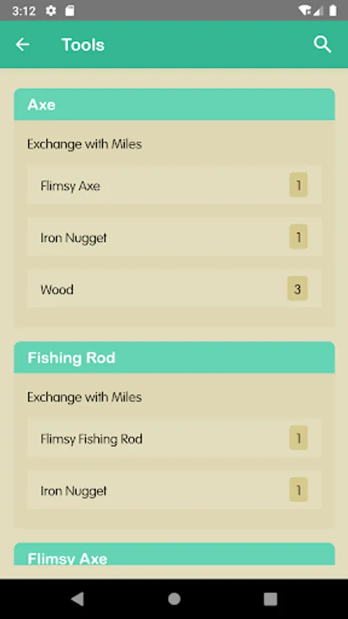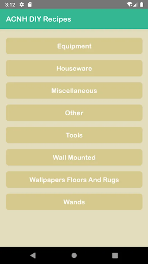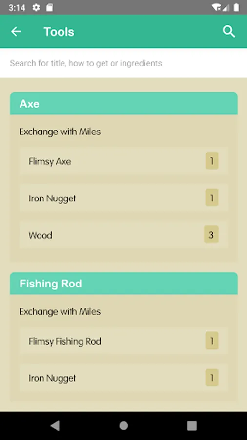 This application enables you to easily look up Animal Crossing New Horizons Do It Yourself recipes from your mobile phone.